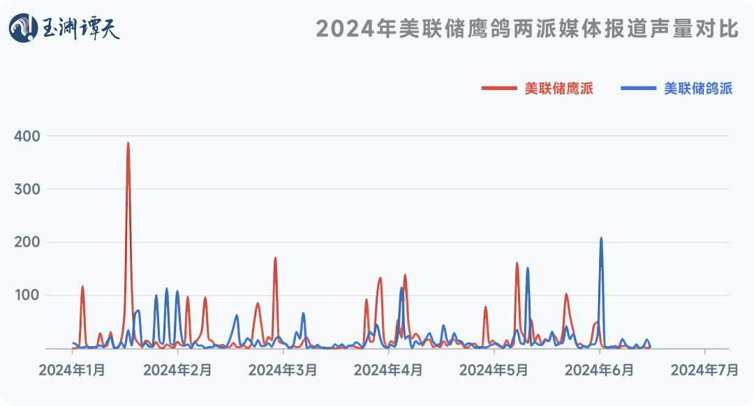 谭主利用数据手段统计了美联储内部坚持不降息的“鹰派”和认为可以降息的“鸽派”相关的报道数量,可以明显看出,两派在不断交错释放信号,形成了明显的错峰。